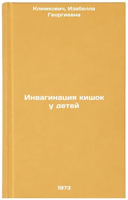 In Russian. Klimkovich, Isabella Georgievna. Invagination of the intestines in children. Moscow: 1973. All images are for identification of editions only. Several books of the same edition may be available. Please feel free to request photos of available books. SKU7399327