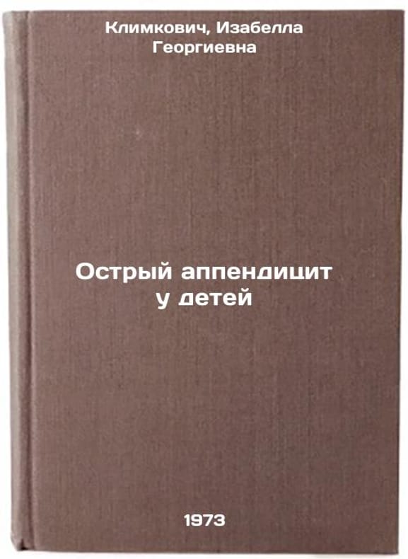 In Russian. Klimkovich, Isabella Georgievna. Acute appendicitis in children. Moscow: 1973. All images are for identification of editions only. Several books of the same edition may be available. Please feel free to request photos of available books. SKU7399328