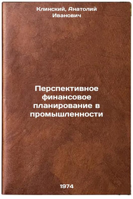 In Russian. Klinsky, Anatoly Ivanovich. Promising financial planning in industry. Moscow: Finance, 1974. Perspektivnoe finansovoe planirovanie v promyshlennosti. In Russian /Advanced financial planning in industry. All images are for identification of editions only. Several books of the same edition may be available. Please feel free to request photos of available books. SKU7400084