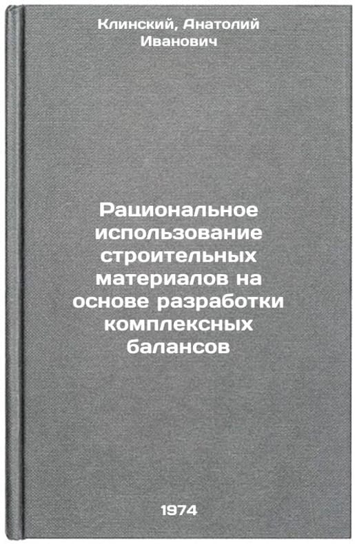 In Russian. Klinsky, Anatoly Ivanovich. Rational use of building materials on the basis of development of complex balance sheets. Moscow: TsNIITEIMS, 1974. Ratsional'noe ispol'zovanie stroitel'nykh materialov na osnove razrabotki kompleksnykh balansov. In Russian /Managing Building Materials by Developing Integrated Balances. All images are for identification of editions only. Several books of the same edition may be available. Please feel free to request photos of available books. SKU7400088
