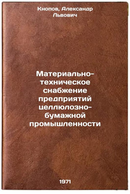 In Russian. Knopov, Alexander Lvovich. Material and Technical Supply to Pulp and Paper Industries. Moscow: Forest Industry, 1971. Material'no-tekhnicheskoe snabzhenie predpriyatiy tsellyulozno-bumazhnoy promyshlennosti. In Russian /Supply to the pulp and paper industry . All images are for identification of editions only. Several books of the same edition may be available. Please feel free to request photos of available books. SKU7400642