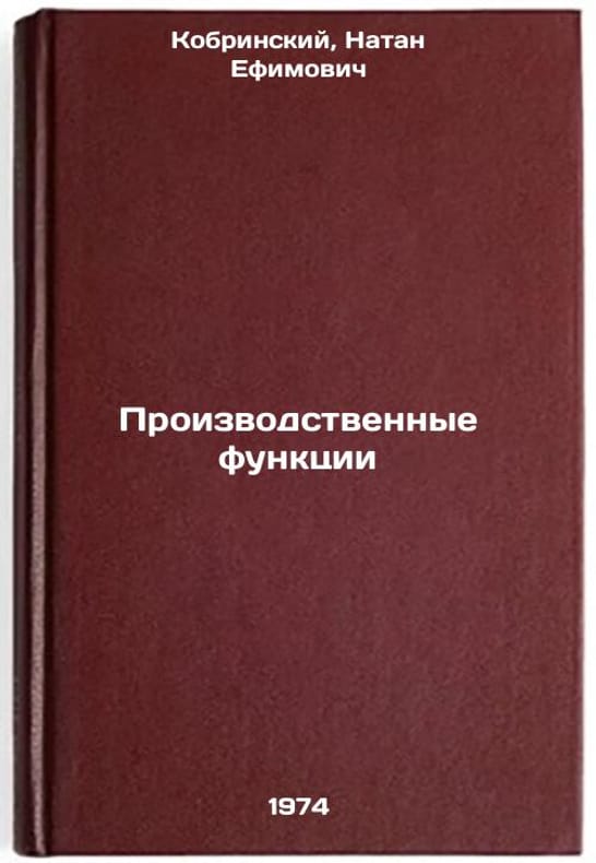 In Russian. Kobrinsky, Nathan Efimovich. Production Functions. Moscow: 1974. All images are for identification of editions only. Several books of the same edition may be available. Please feel free to request photos of available books. SKU7400948