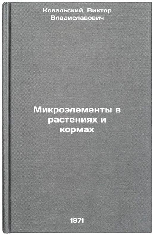 In Russian. Kovalsky, Viktor Vladislavovich. Micronutrients in Plants and Feed. Moscow: Kolos, 1971. Mikroelementy v rasteniyakh i kormakh. In Russian /Micronutrients in Plants and Feed . All images are for identification of editions only. Several books of the same edition may be available. Please feel free to request photos of available books. SKU7401792