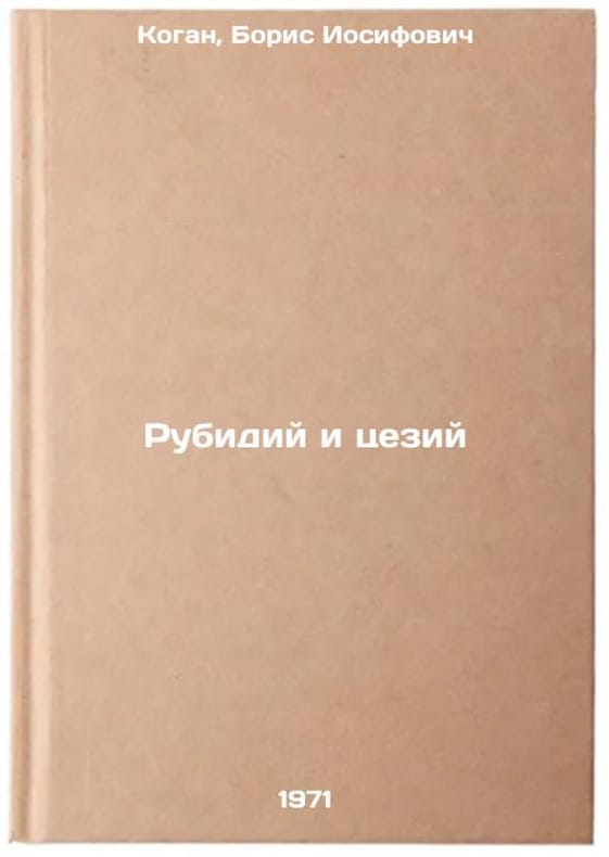 In Russian. Kogan, Boris Iosifovich. Rubidium and cesium. Moscow: Science, 1971. All images are for identification of editions only. Several books of the same edition may be available. Please feel free to request photos of available books. SKU7402169