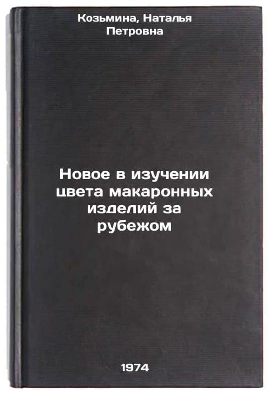 In Russian. Kozmina, Natalya Petrovna. New developments in the study of the color of pasta products abroad. Moscow: TsNIITEIpischprom, 1974. Novoe v izuchenii tsveta makaronnykh izdeliy za rubezhom. In Russian /New developments in the study of the color of pasta abroad. All images are for identification of editions only. Several books of the same edition may be available. Please feel free to request photos of available books. SKU7404007