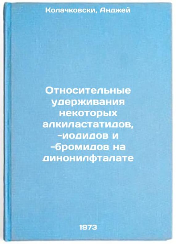 In Russian. Kolackowski, Andrzej. Relative retention of certain alkylastatides, -iodides, and -bromides on dinonyl phthalate. Dubna: 1973. Otnositelnye uderzhivaniya nekotorykh alkilastatidov, -iodidov i -bromidov na dinonilftalate. In Russian/Relative retention of certain alkylastatides, -iodides, and -bromides on dinonyl phthalate. All images are for identification of editions only. Several books of the same edition may be available. Please feel free to request photos of available books. SKU7404272