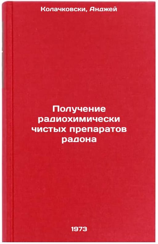 In Russian. Kolaczkowski, Andrzej. Obtaining radiochemically pure radon preparations. Dubna: 1973. Poluchenie radiokhimicheski chistykh preparatov radona. In Russian/Radiochemically pure radon preparations. All images are for identification of editions only. Several books of the same edition may be available. Please feel free to request photos of available books. SKU7404273