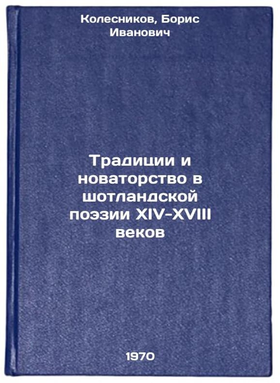 In Russian. Kolesnikov, Boris Ivanovich. Tradition and Innovation in 14th-18th Century Scottish Poetry. Moscow: Enlightenment, 1970. Traditsii i novatorstvo v shotlandskoy poezii XIV-XVIII vekov. In Russian /Tradition and Innovation in 14th-18th Century Scottish Poetry . All images are for identification of editions only. Several books of the same edition may be available. Please feel free to request photos of available books. SKU7404412