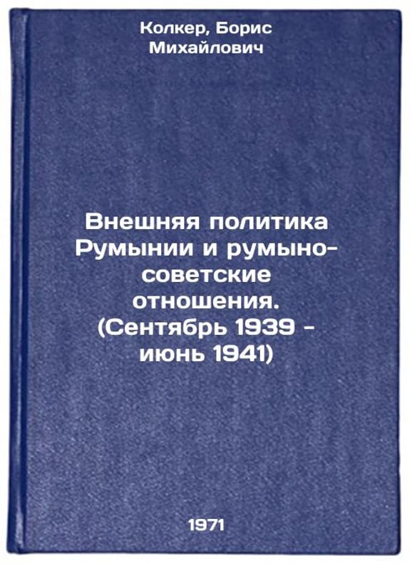 In Russian. Kolker, Boris Mikhailovich. Romanian Foreign Policy and Romanian-Soviet Relations. (September 1939-June 1941). Moscow: Science, 1971. Vneshnyaya politika Rumynii i rumyno-sovetskie otnosheniya. (Sentyabr' 1939 - iyun' 1941). In Russian /Romanian foreign policy and Romanian-Soviet relations. (September 1939-June 1941) . All images are for identification of editions only. Several books of the same edition may be available. Please feel free to request photos of available books. SKU7404652