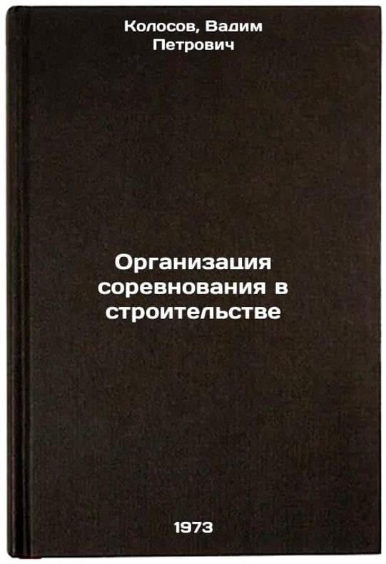 In Russian. Kolosov, Vadim Petrovich. Organization of competition in construction. Moscow: Stroyizdat, 1973. Organizatsiya sorevnovaniya v stroitelstve. In Russian/Organization of competition in construction. All images are for identification of editions only. Several books of the same edition may be available. Please feel free to request photos of available books. SKU7405393