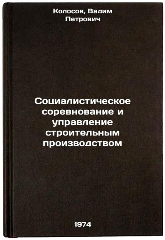 In Russian. Kolosov, Vadim Petrovich. Socialist Competition and Construction Management. Moscow: Stroyizdat, 1974. Sotsialisticheskoe sorevnovanie i upravlenie stroitel'nym proizvodstvom. In Russian /Socialist Competition and Construction Management. All images are for identification of editions only. Several books of the same edition may be available. Please feel free to request photos of available books. SKU7405394