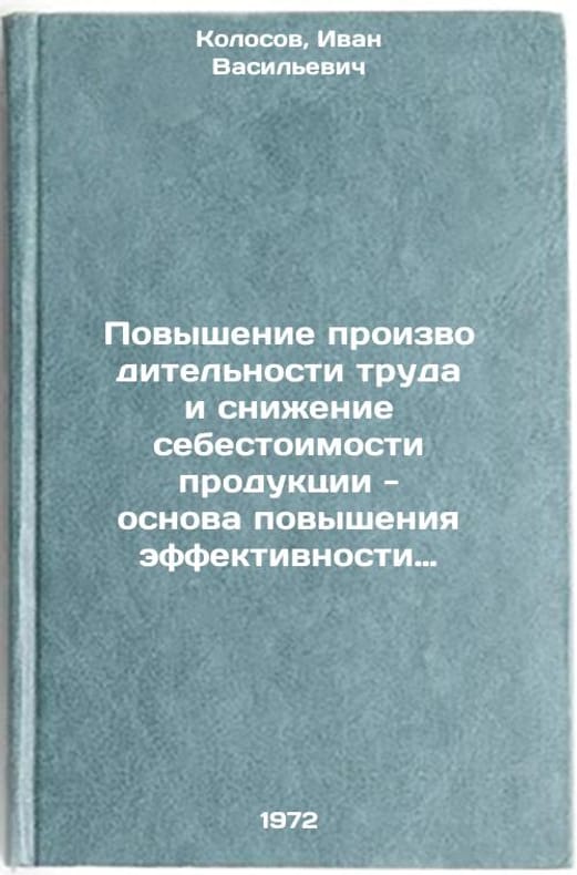 In Russian. Kolosov, Ivan Vasilyevich. Increasing labor productivity and reducing production costs are the basis for increasing the efficiency of agricultural production. Volgograd: 1972. Povyshenie proizvoditelnosti truda i snizhenie sebestoimosti produktsii - osnova povysheniya effektivnosti selskokhozyaystvennogo proizvodstva. In Russian/Increasing productivity and lowering production costs are the basis for improving agricultural productivity. All images are for identification of editions only. Several books of the same edition may be available. Please feel free to request photos of available books. SKU7405406