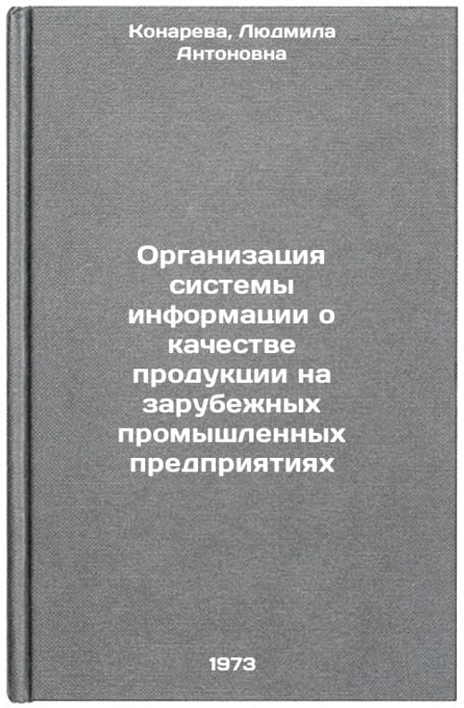 In Russian. Konareva, Lyudmila Antonovna. Organization of a system of product quality information at foreign industrial enterprises. Moscow: Publishing House of Standards, 1973. Organizatsiya sistemy informatsii o kachestve produktsii na zarubezhnykh promyshlennykh predpriyatiyakh. In Russian/Organization of a product quality information system in foreign industrial enterprises. All images are for identification of editions only. Several books of the same edition may be available. Please feel free to request photos of available books. SKU7405969
