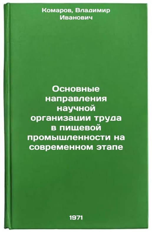 In Russian. Komarov, Vladimir Ivanovich. The main directions of scientific organization of labor in the food industry at the present stage. Moscow: Food industry, 1971. Osnovnye napravleniya nauchnoy organizatsii truda v pishchevoy promyshlennosti na sovremennom etape. In Russian /The main directions of scientific organization of work in the food industry at the present stage . All images are for identification of editions only. Several books of the same edition may be available. Please feel free to request photos of available books. SKU7406150