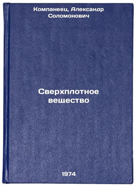 In Russian. Kompaneets, Alexander Solomonovich. Superdense matter. Moscow: Znanie, 1974. All images are for identification of editions only. Several books of the same edition may be available. Please feel free to request photos of available books. SKU7407079