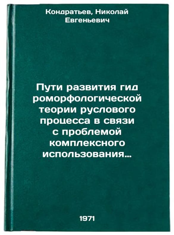 In Russian. Kondratiev, Nikolai Evgenievich. Ways of Development of Hydromorphological Theory of the River Process in Connection with the Problem of Complex Use of Water Resources. Moscow: 1971. Puti razvitiya gidromorfologicheskoy teorii ruslovogo protsessa v svyazi s problemoy kompleksnogo ispol'zovaniya vodnykh resursov. In Russian /Ways of Development of Hydromorphological Theory of the River Process in Connection with the Problem of Complex Use of Water Resources . All images are for identification of editions only. Several books of the same edition may be available. Please feel free to request photos of available books. SKU7407206