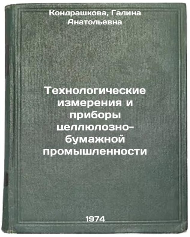 In Russian. Kondrashkova, Galina Anatolyevna. Technological Measurements and Devices of the Pulp and Paper Industry. Moscow: Forest Industry, 1974. Tekhnologicheskie izmereniya i pribory tsellyulozno-bumazhnoy promyshlennosti. In Russian /Process Measurements and Appliances of the Pulp and Paper Industry. All images are for identification of editions only. Several books of the same edition may be available. Please feel free to request photos of available books. SKU7407212