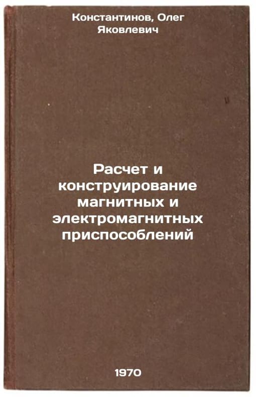 In Russian. Konstantinov, Oleg Yakovlevich. Calculation and Design of Magnetic and Electromagnetic Devices. Moscow: Machine Building, 1970. Raschet i konstruirovanie magnitnykh i elektromagnitnykh prisposobleniy. In Russian /Calculation and design of magnetic and electromagnetic devices . All images are for identification of editions only. Several books of the same edition may be available. Please feel free to request photos of available books. SKU7407793