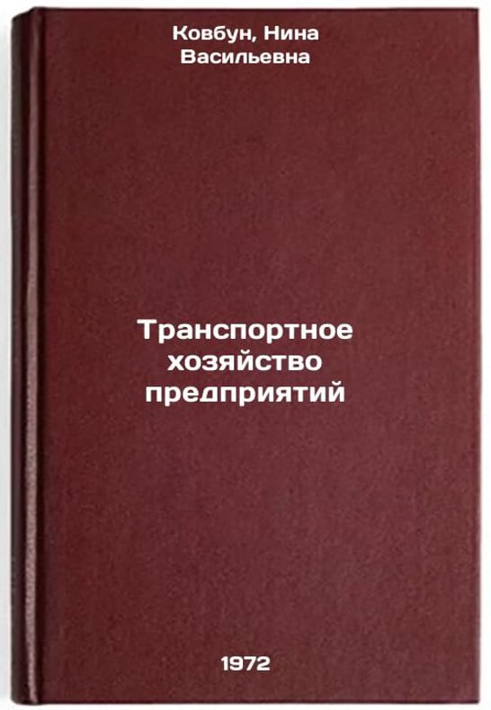 In Russian. Kovbun, Nina Vasilyevna. Transport of enterprises. Kyiv: 1972. All images are for identification of editions only. Several books of the same edition may be available. Please feel free to request photos of available books. SKU7407969