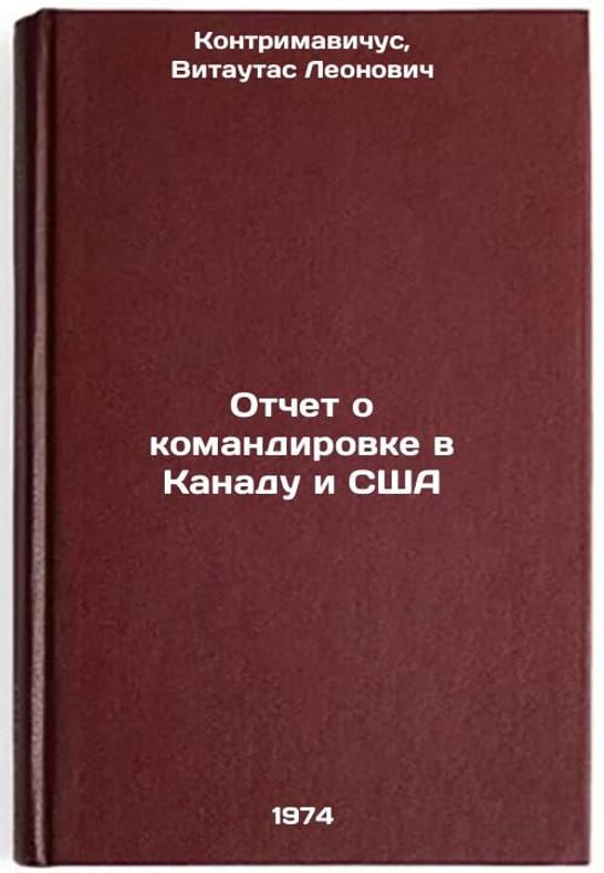 In Russian. Kontrimavichus, Vytautas Leonovich. Report on his mission to Canada and the USA. Moscow: 1974. Otchet o komandirovke v Kanadu i SShA. In Russian /Mission Report to Canada and the United States. All images are for identification of editions only. Several books of the same edition may be available. Please feel free to request photos of available books. SKU7408831