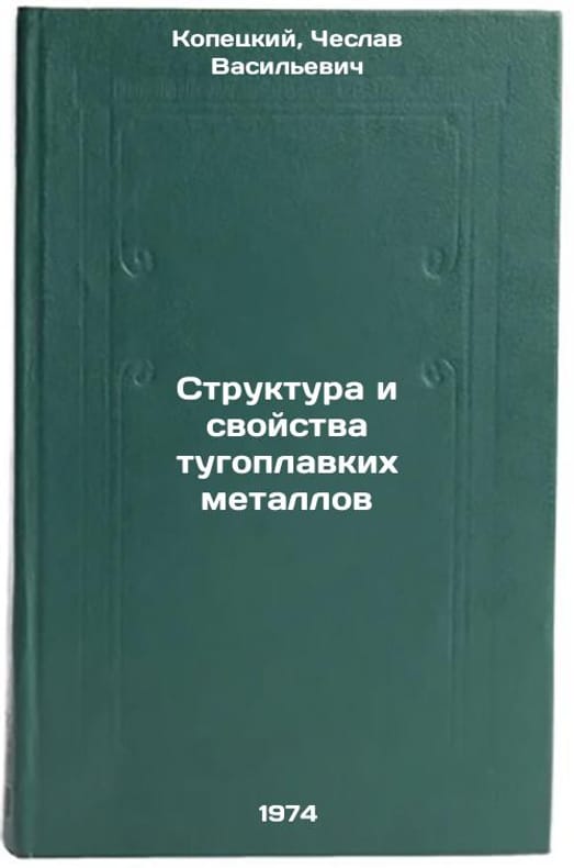In Russian. Kopetsky, Cheslav Vasilievich. Structure and properties of refractory metals. Moscow: Metallurgy, 1974. Struktura i svoystva tugoplavkikh metallov. In Russian /Structure and properties of refractory metals. All images are for identification of editions only. Several books of the same edition may be available. Please feel free to request photos of available books. SKU7409491