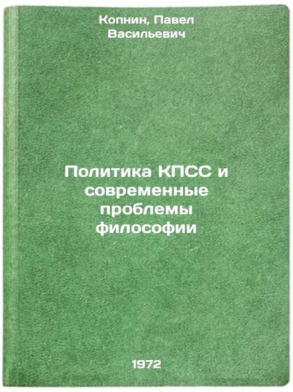 In Russian. Kopnin, Pavel Vasilyevich. CPSU Policy and Contemporary Problems of Philosophy. Moscow: Knowledge, 1972. Politika KPSS i sovremennye problemy filosofii. In Russian/CPSU Politics and Contemporary Philosophy Issues. All images are for identification of editions only. Several books of the same edition may be available. Please feel free to request photos of available books. SKU7409517
