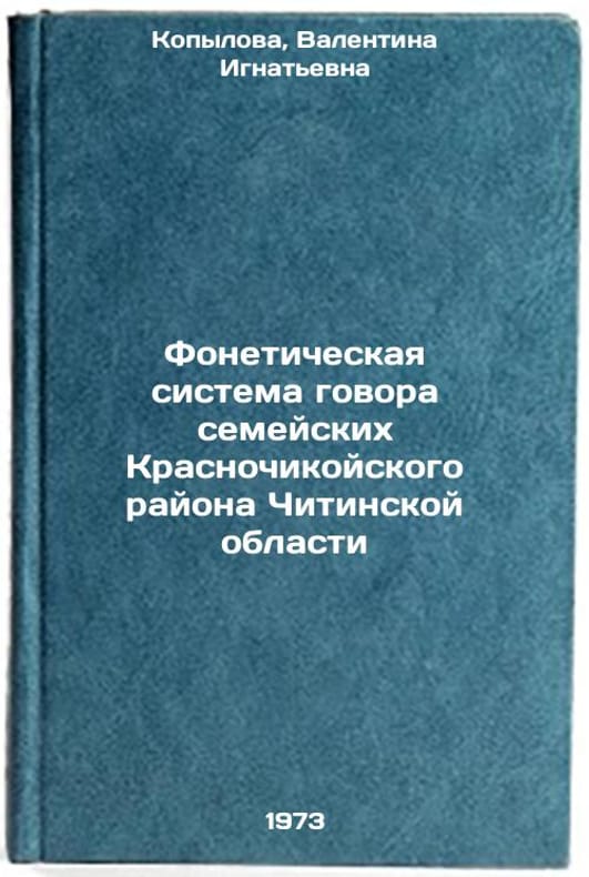 In Russian. Kopylova, Valentina Ignatievna. Phonetic speaking system of the family of Krasnochikoye district of Chita oblast. Ulan-Ude: Buryat, 1973. Foneticheskaya sistema govora semeyskikh Krasnochikoyskogo rayona Chitinskoy oblasti. In Russian/Phonetic speaking system for families in Krasnochikoye district of Chita oblast. All images are for identification of editions only. Several books of the same edition may be available. Please feel free to request photos of available books. SKU7409645