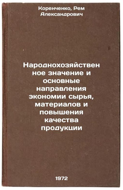 In Russian. Korenchenko, Rem Aleksandrovich. The national economic significance and the main directions of saving raw materials and improving the quality of products. Perm: 1972. Narodnokhozyaystvennoe znachenie i osnovnye napravleniya ekonomii syrya, materialov i povysheniya kachestva produktsii. In Russian/The national economy and the main directions of saving raw materials and improving the quality of products. All images are for identification of editions only. Several books of the same edition may be available. Please feel free to request photos of available books. SKU7409847
