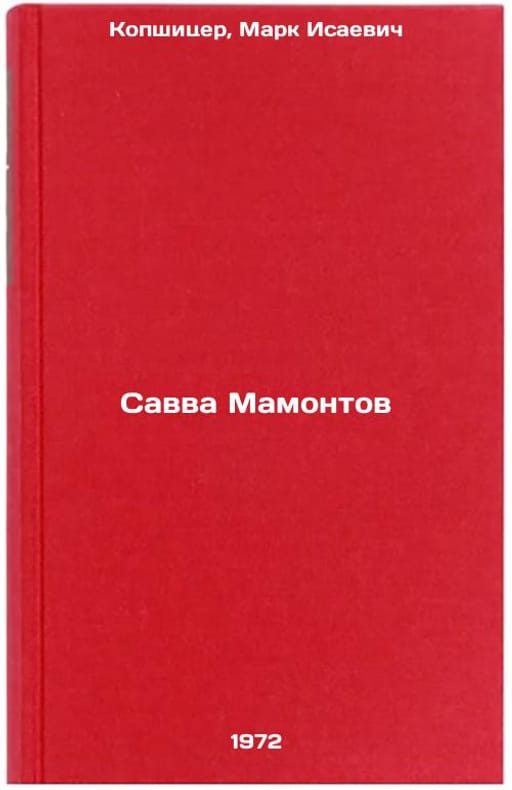 In Russian. Kopshitser, Mark Isaevich. Savva Mamontov. Moscow: Art, 1972. All images are for identification of editions only. Several books of the same edition may be available. Please feel free to request photos of available books. SKU7410057