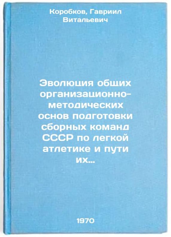In Russian. Korobkov, Gavriil Vitalievich. Evolution of the General Organizational and Methodological Bases for the Preparation of USSR National Teams in Track and Field Athletics and the Ways of Their Further Development. Moscow: 1970. Evolyutsiya obshchikh organizatsionno-metodicheskikh osnov podgotovki sbornykh komand SSSR po legkoy atletike i puti ikh dal'neyshego razvitiya. In Russian /Evolution of the General Organizational and Methodological Bases for the Preparation of USSR National Track and Field Teams and the Ways of Their Further Development . All images are for identification of editions only. Several books of the same edition may be available. Please feel free to request photos of available books. SKU7410627