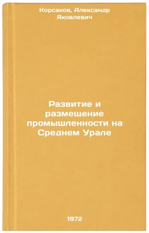 In Russian. Korsakov, Alexander Yakovlevich. Development and Placement of Industry in the Middle Urals. Sverdlovsk: Middle-Ural Book Publishing House, 1972. Razvitie i razmeshchenie promyshlennosti na Srednem Urale. In Russian/Industrial Development and Placement in the Central Urals. All images are for identification of editions only. Several books of the same edition may be available. Please feel free to request photos of available books. SKU7411589