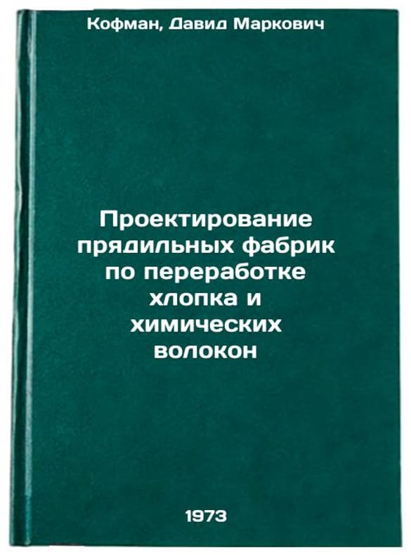 In Russian. Kofman, David Markovich. Designing spinning factories for processing cotton and chemical fibres. Leningrad: 1973. Proektirovanie pryadilnykh fabrik po pererabotke khlopka i khimicheskikh volokon. In Russian/Designing spinning factories for cotton and chemical fibres. All images are for identification of editions only. Several books of the same edition may be available. Please feel free to request photos of available books. SKU7412302