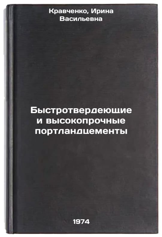 Short description: In Russian. Kravchenko, Irina Vasilievna. High-strength and especially fast-hardening Portland cement. Moscow: Stroyizdat, 1971. Vysokoprochnye i osobo bystrotverdeyushchie portlandtsementy. In Russian /Portland cement with high strength and extremely fast hardening. The image is provided for reference only. It may reflect condition of one of the available copies or only help in identifying the edition. Please feel free to contact us for a detailed description of the copies available. SKU7425981