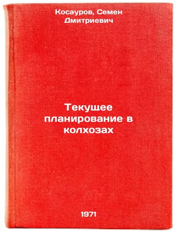 In Russian. Kosaurov, Semyon Dmitrievich. Current planning in collective farms. Moscow: Kolos, 1971. Tekushchee planirovanie v kolkhozakh. In Russian /Current planning in collective farms . All images are for identification of editions only. Several books of the same edition may be available. Please feel free to request photos of available books. SKU7413851