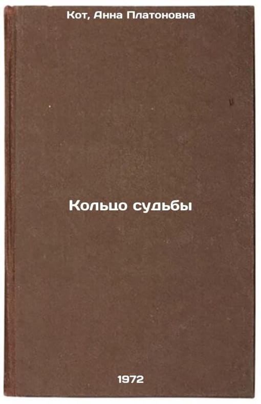 In Russian. Kot, Anna Platonovna. Ring of Destiny. Moscow: Mologovaya Guards, 1972. All images are for identification of editions only. Several books of the same edition may be available. Please feel free to request photos of available books. SKU7414737