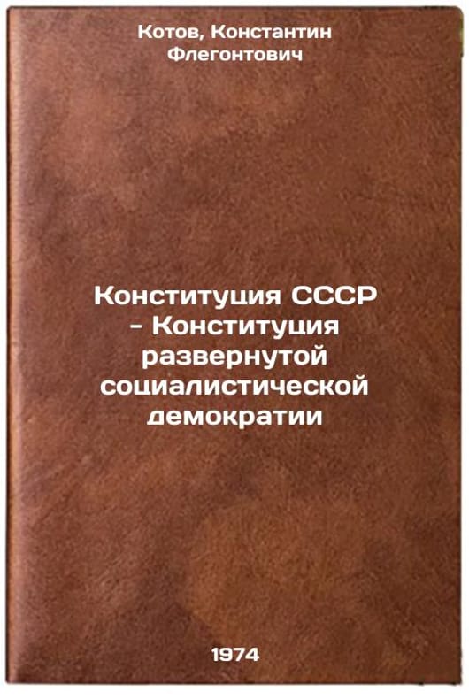 In Russian. Kotov, Konstantin Flegontovich. The Constitution of the USSR is the Constitution of Expanded Socialist Democracy. Almaty: 1974. Konstitutsiya SSSR - Konstitutsiya razvernutoy sotsialisticheskoy demokratii. In Russian /Constitution of the USSR - Constitution of Extended Socialist Democracy. All images are for identification of editions only. Several books of the same edition may be available. Please feel free to request photos of available books. SKU7415022