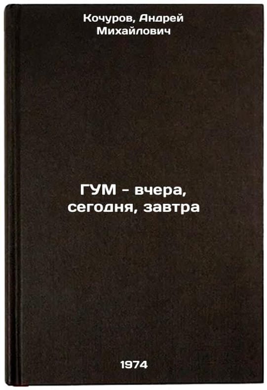 In Russian. Kochurov, Andrey Mikhailovich. GUM - yesterday, today, tomorrow. Moscow: Znanie, 1974. All images are for identification of editions only. Several books of the same edition may be available. Please feel free to request photos of available books. SKU7415807