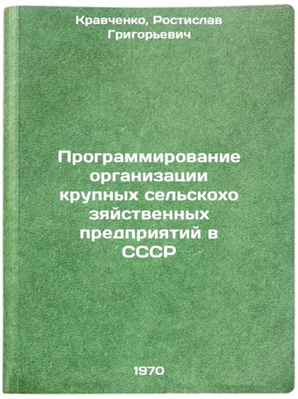 In Russian. Kravchenko, Rostislav Grigorievich. Programming the Organization of Large Agricultural Enterprises in the USSR. Moscow: 1970. Programmirovanie organizatsii krupnykh sel'skokhozyaystvennykh predpriyatiy v SSSR. In Russian /Programming the organization of large agricultural enterprises in the USSR . All images are for identification of editions only. Several books of the same edition may be available. Please feel free to request photos of available books. SKU7416610