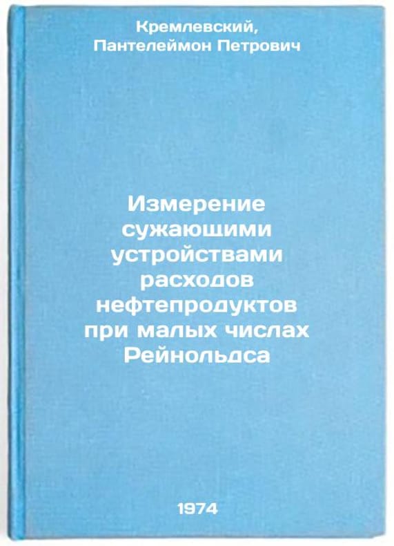 In Russian. Kremlevsky, Panteleimon Petrovich. Measurement of petroleum products consumption with narrowing devices at Reynolds small numbers. Moscow: TsNIITEneftekhim, 1974. Izmerenie suzhayushchimi ustroystvami raskhodov nefteproduktov pri malykh chislakh Reynol'dsa. In Russian /Measurement by narrowing devices of petroleum consumption at Reynolds low numbers. All images are for identification of editions only. Several books of the same edition may be available. Please feel free to request photos of available books. SKU7418338