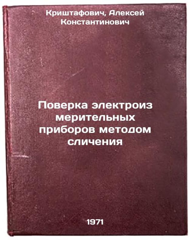 In Russian. Kristafovich, Alexey Konstantinovich. Verification of electrical measuring devices by comparison method. Kyiv: 1971. Poverka elektroizmeritel'nykh priborov metodom slicheniya. In Russian /Verification of electrical measuring devices by comparison . All images are for identification of editions only. Several books of the same edition may be available. Please feel free to request photos of available books. SKU7419243