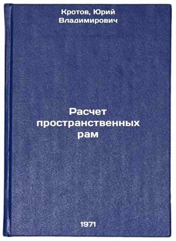 In Russian. Krotov, Yuri Vladimirovich. Calculation of Spatial Frames. Moscow: Stroyizdat, 1971. All images are for identification of editions only. Several books of the same edition may be available. Please feel free to request photos of available books. SKU7419478