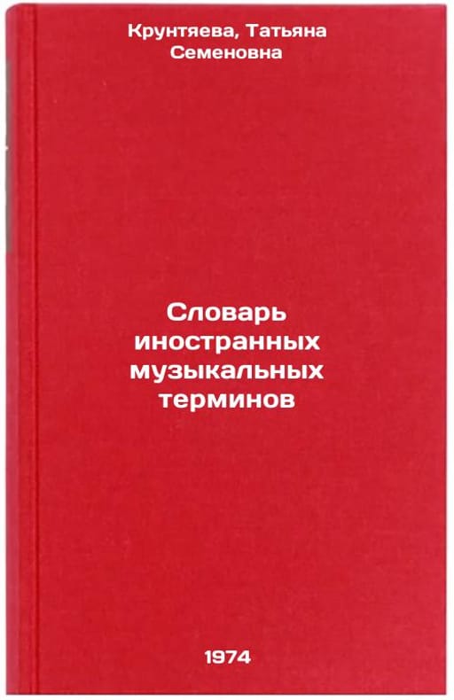In Russian. Kruntyaeva, Tatyana Semenovna. Dictionary of Foreign Musical Terms. Leningrad: Music. Leningrad Branch, 1974. Slovar' inostrannykh muzykal'nykh terminov. In Russian /Dictionary of Foreign Music Terms. All images are for identification of editions only. Several books of the same edition may be available. Please feel free to request photos of available books. SKU7419785