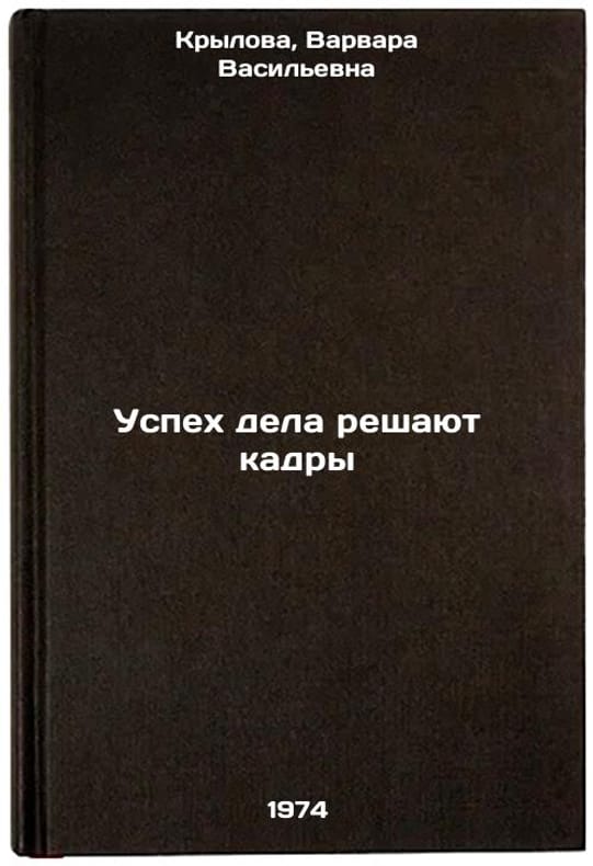 In Russian. Krylova, Varvara Vasilievna. The success of affairs is decided by the personnel. Moscow: Znanie (Znanie) RSFSR, 1974. All images are for identification of editions only. Several books of the same edition may be available. Please feel free to request photos of available books. SKU7420149