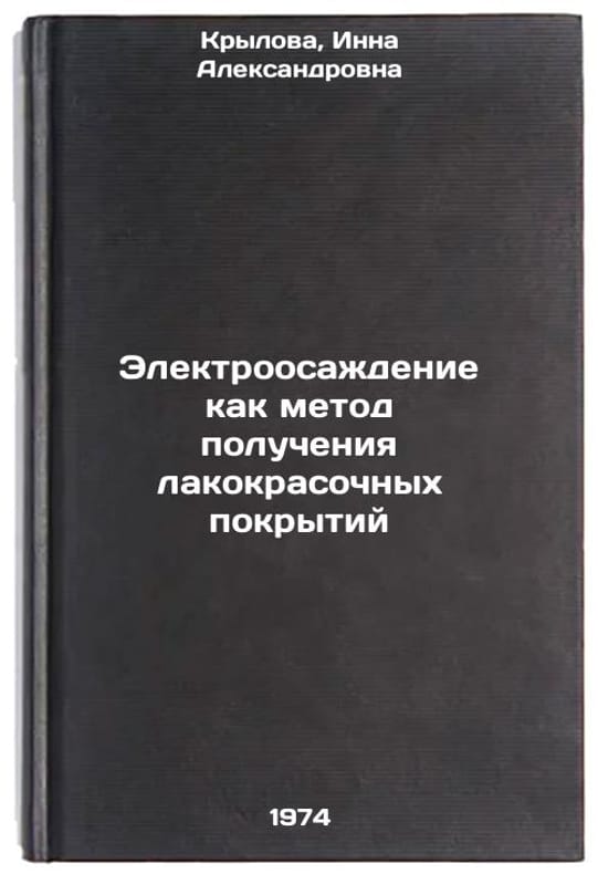 In Russian. Krylova, Inna Alexandrovna. Electroprecipitation as a method for obtaining paint coatings. Moscow: Chemistry, 1974. Elektroosazhdenie kak metod polucheniya lakokrasochnykh pokrytiy. In Russian /Electroprecipitation as a method for obtaining paint coatings. All images are for identification of editions only. Several books of the same edition may be available. Please feel free to request photos of available books. SKU7420171