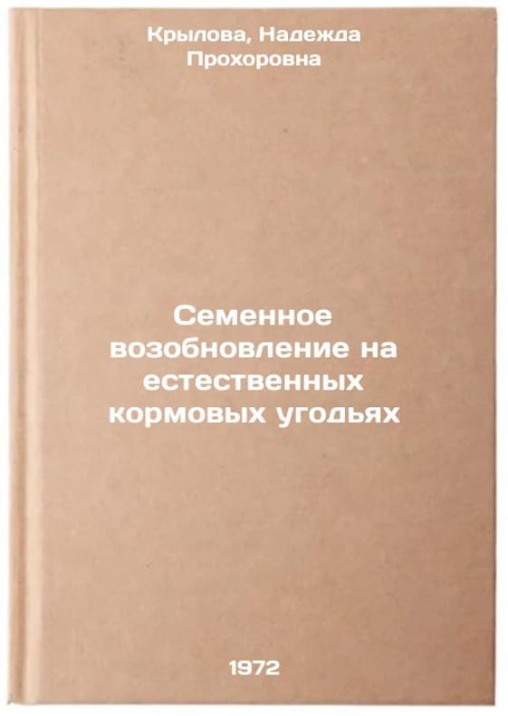 In Russian. Krylova, Nadezhda Prokhorovna. Seed regeneration on natural forage lands. Moscow: 1972. Semennoe vozobnovlenie na estestvennykh kormovykh ugodyakh. In Russian/Seed regeneration on natural forage land. All images are for identification of editions only. Several books of the same edition may be available. Please feel free to request photos of available books. SKU7420198