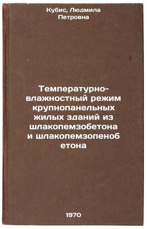 In Russian. Kubis, Lyudmila Petrovna. Temperature and humidity regime of large-panel residential buildings made of slag concrete and slag concrete. Kyiv: 1970. Temperaturno-vlazhnostnyy rezhim krupnopanel'nykh zhilykh zdaniy iz shlakopemzobetona i shlakopemzopenobetona. In Russian /Temperature and humidity regime of large-panel residential buildings made of slag and slag and foam concrete . All images are for identification of editions only. Several books of the same edition may be available. Please feel free to request photos of available books. SKU7420646