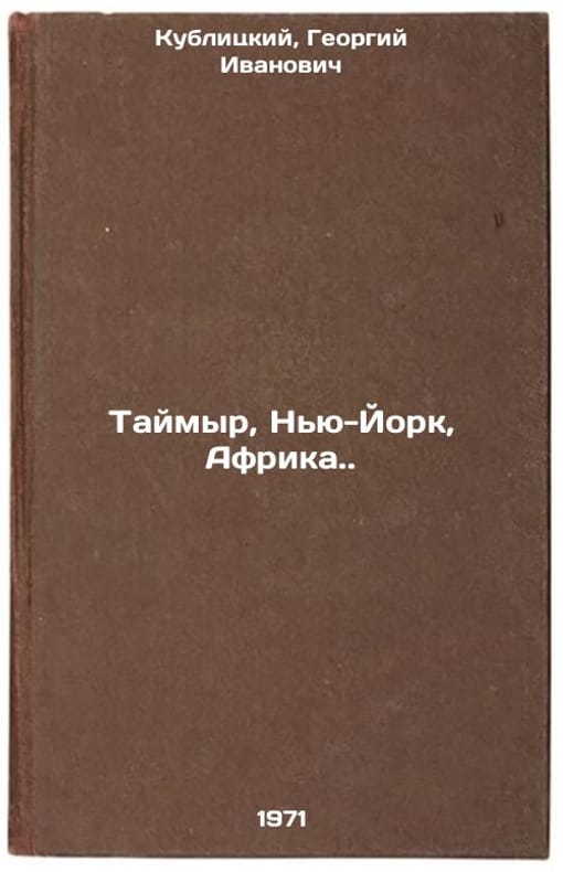 In Russian. Kublitsky, Georgy Ivanovich. Taimyr, New York, Africa. Moscow: Det. lit., 1971. All images are for identification of editions only. Several books of the same edition may be available. Please feel free to request photos of available books. SKU7420678