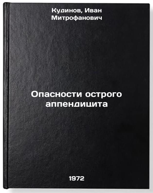 In Russian. Kudinov, Ivan Mitrofanovich. The Dangers of Acute Appendicitis. Voronezh: Central-Chernozemsky Book of Books, 1971 vol. 1972. All images are for identification of editions only. Several books of the same edition may be available. Please feel free to request photos of available books. SKU7420945