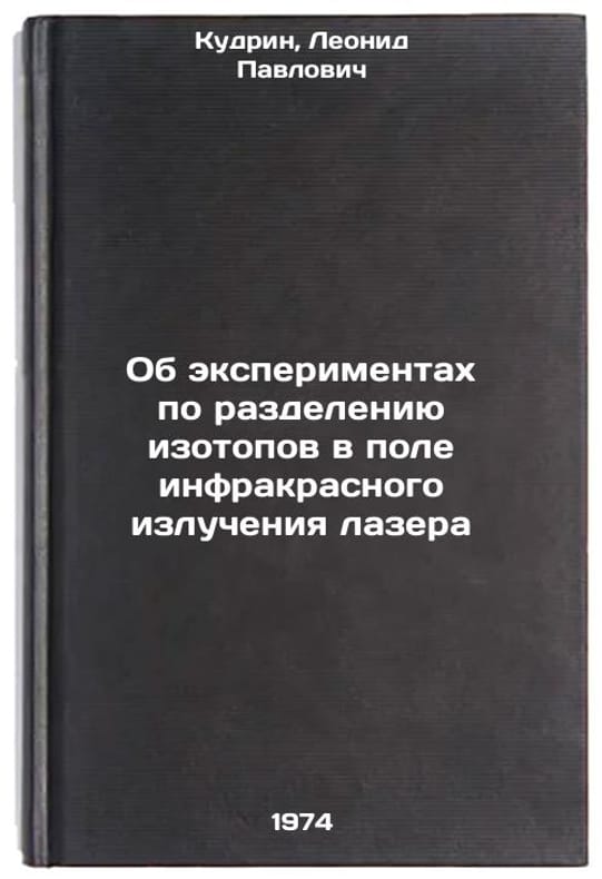 In Russian. Kudrin, Leonid Pavlovich. On experiments on isotope separation in the laser infrared field. Moscow: 1974. Ob eksperimentakh po razdeleniyu izotopov v pole infrakrasnogo izlucheniya lazera. In Russian /On experiments on isotope separation in the laser infrared field. All images are for identification of editions only. Several books of the same edition may be available. Please feel free to request photos of available books. SKU7421031