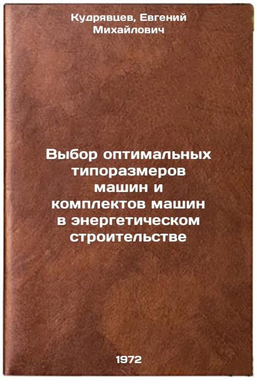 In Russian. Kudryavtsev, Evgeny Mikhailovich. Selection of optimal machine sizes and machine sets in power engineering. Moscow: 1972. Vybor optimalnykh tiporazmerov mashin i komplektov mashin v energeticheskom stroitelstve. In Russian/Choosing optimal machine sizes and machine sets in power engineering. All images are for identification of editions only. Several books of the same edition may be available. Please feel free to request photos of available books. SKU7421164